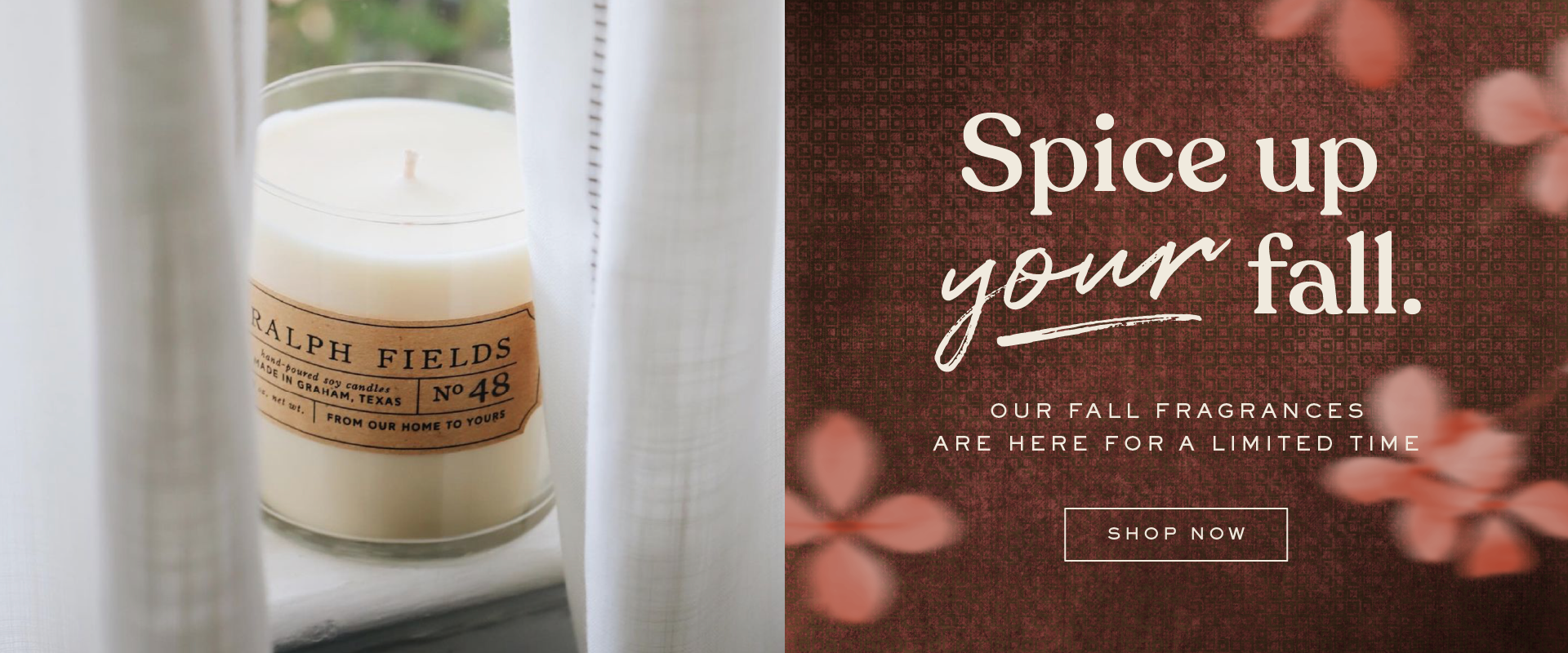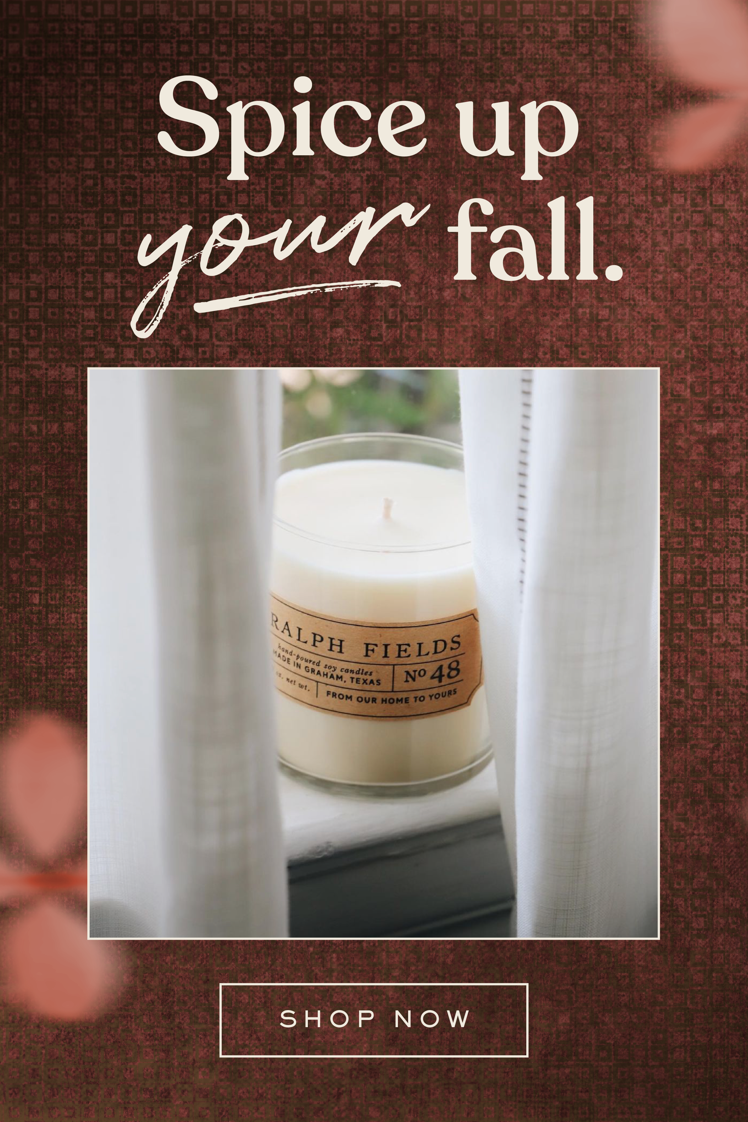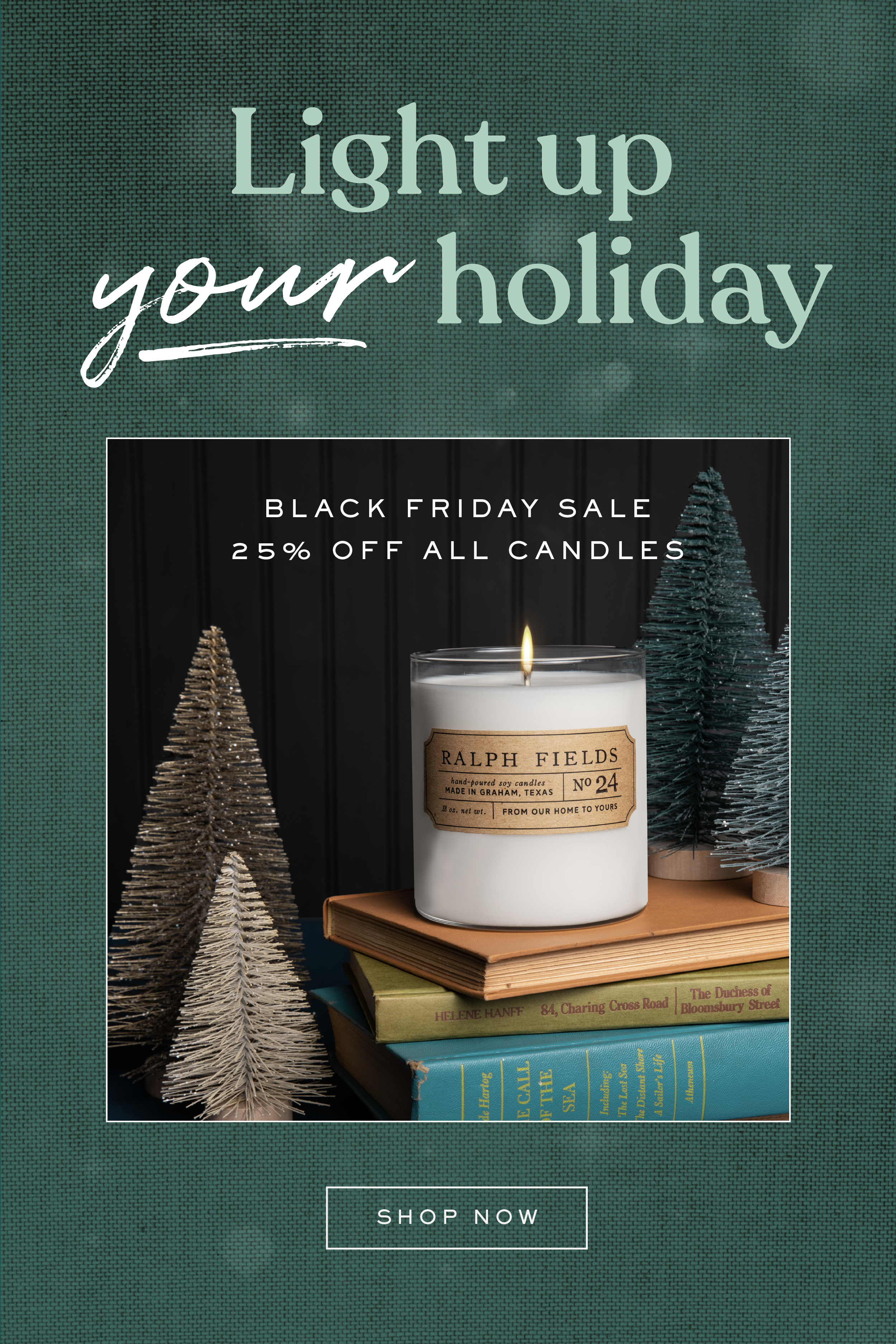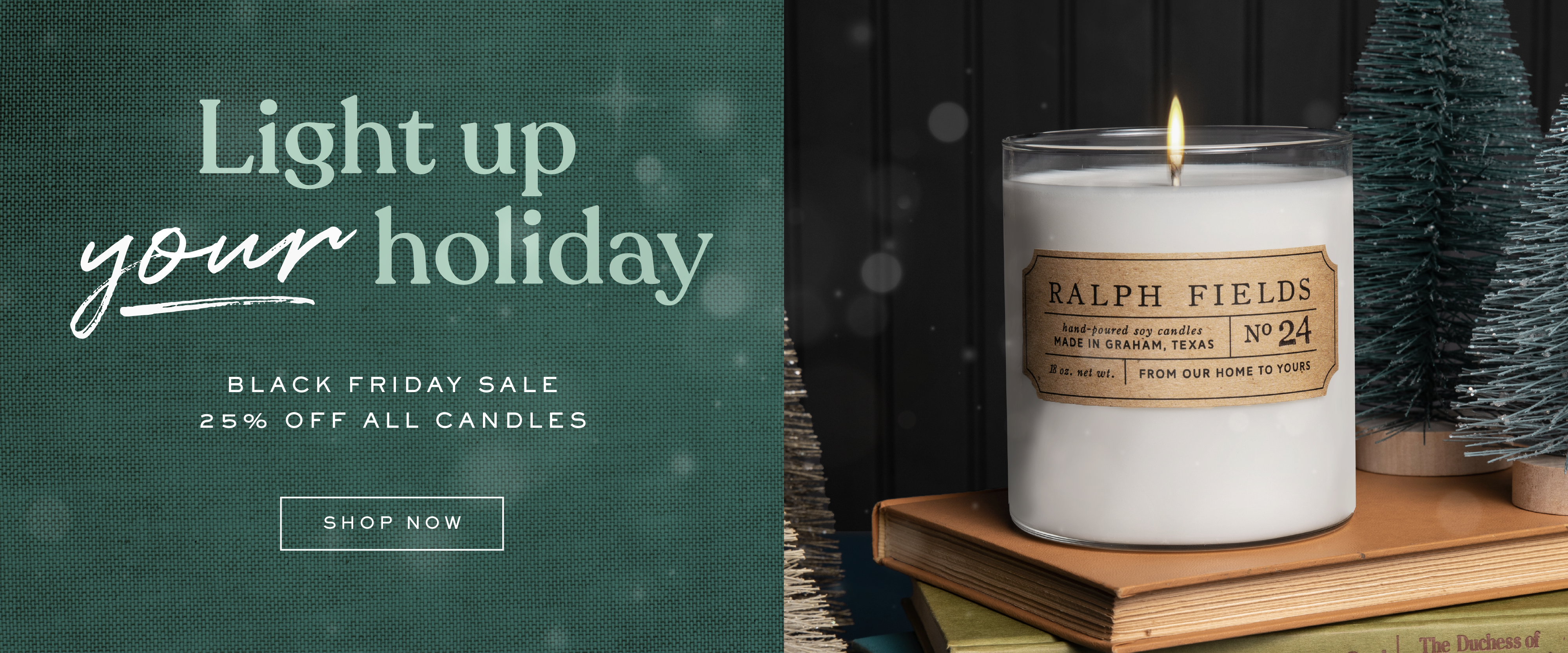 We are Ralph Fields Candles. From our home to yours – every unique scent is inspired by our love of home. Our natural soy wax candles are hand-poured to order at our studio in Graham, Texas.